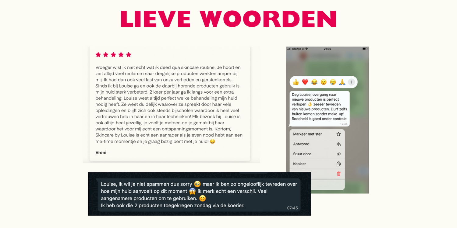 Je huid voelt zijdezacht aan, straalt van frisheid en is diep gehydrateerd. Als je naar jezelf in de spiegel kijkt, zie je een gezuiverde huid met een gezonde glow, een natuurlijke rozige blos en een ontspannen uitstraling met zichtbaar verminderde fijne lijntjes. Veel van mijn klanten vertellen me zelfs dat anderen hen complimenten geven over hoe goed ze eruit zien na een facial.